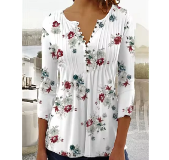 Vintage Floral Print V-neck Shirt