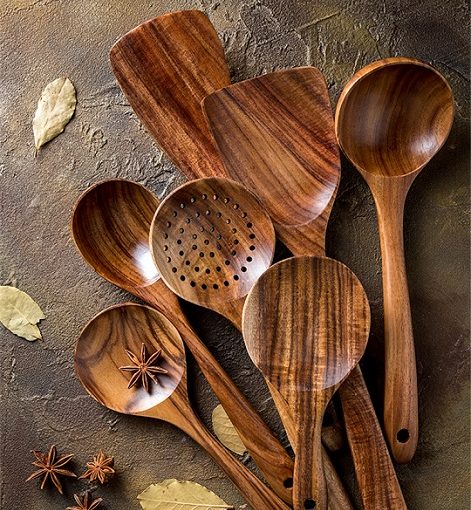 Natural wooden kitchenware set