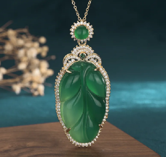 Green Jade Leaf Pendant Necklace