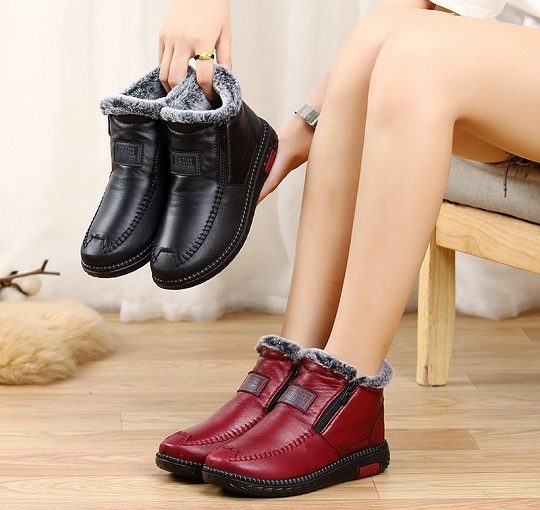 Non-slip cotton leather boots