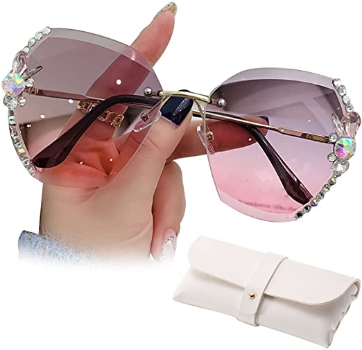 Women rimless diamond sunglasses