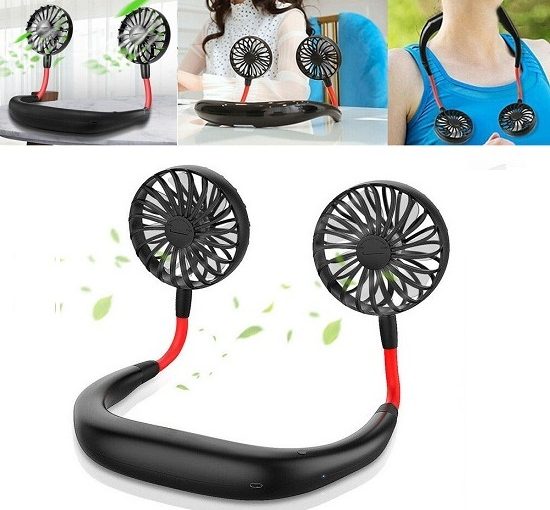 Portable hanging neck fan