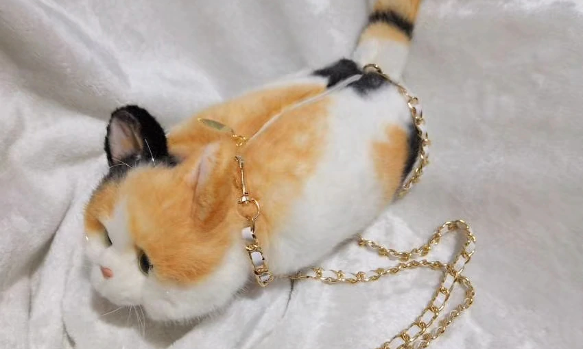Realistic cat body shoulder bag purse