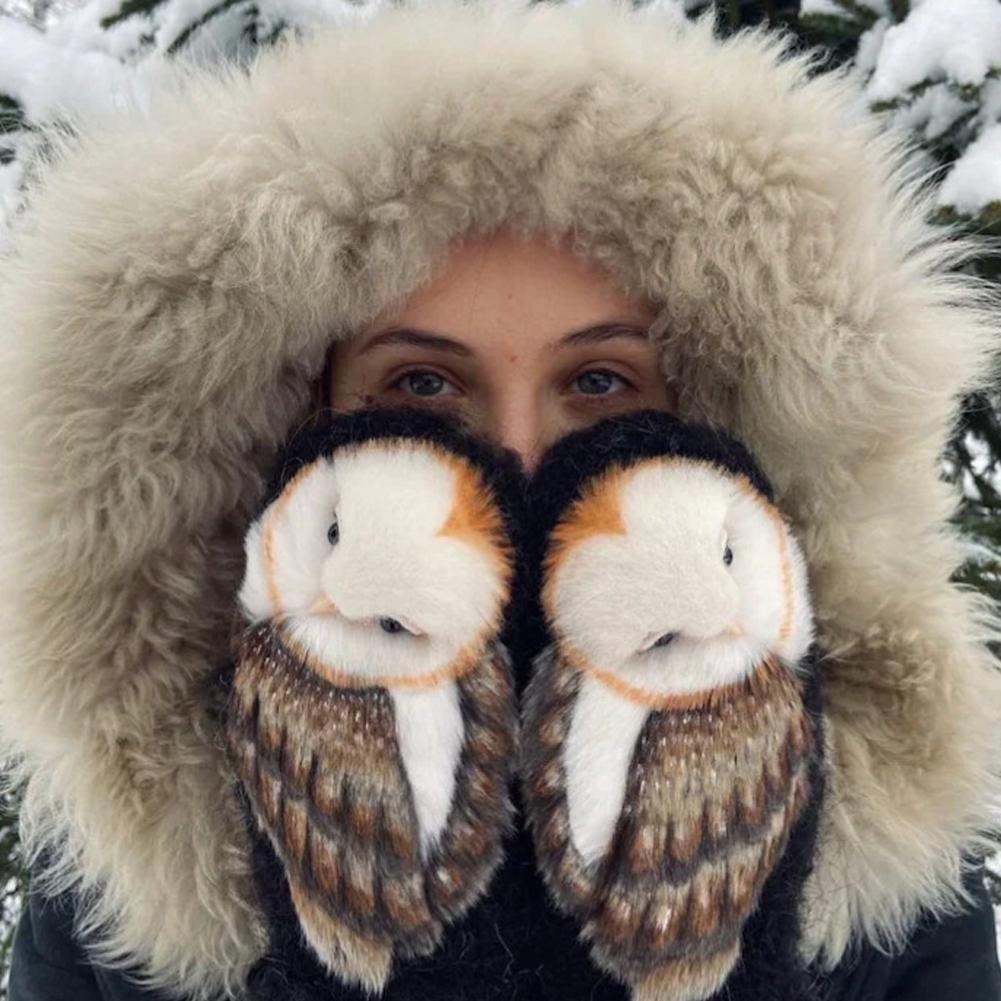 Hand Knitted Nordic Mittens With Owls